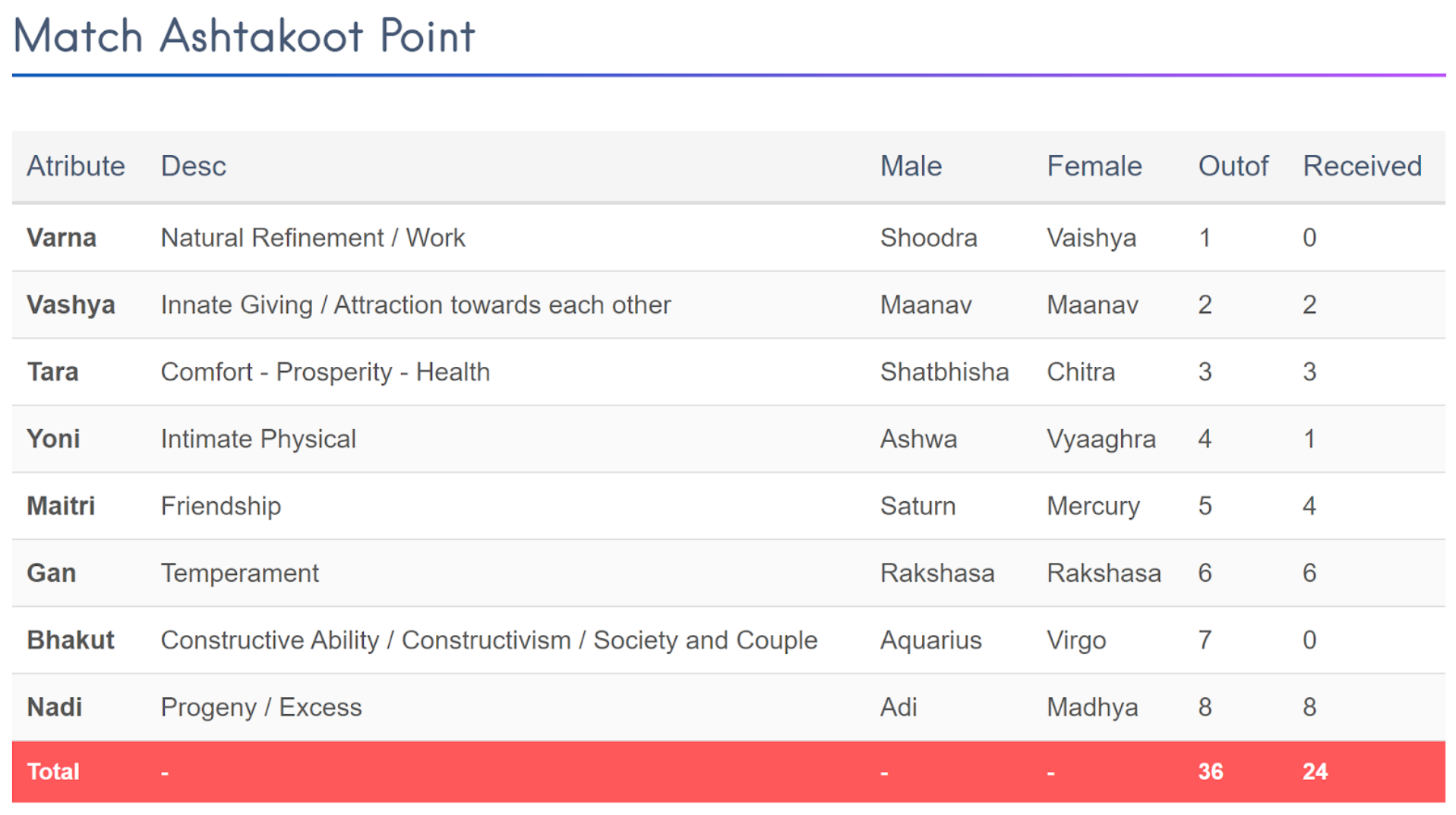 Match Ashtakoot Point