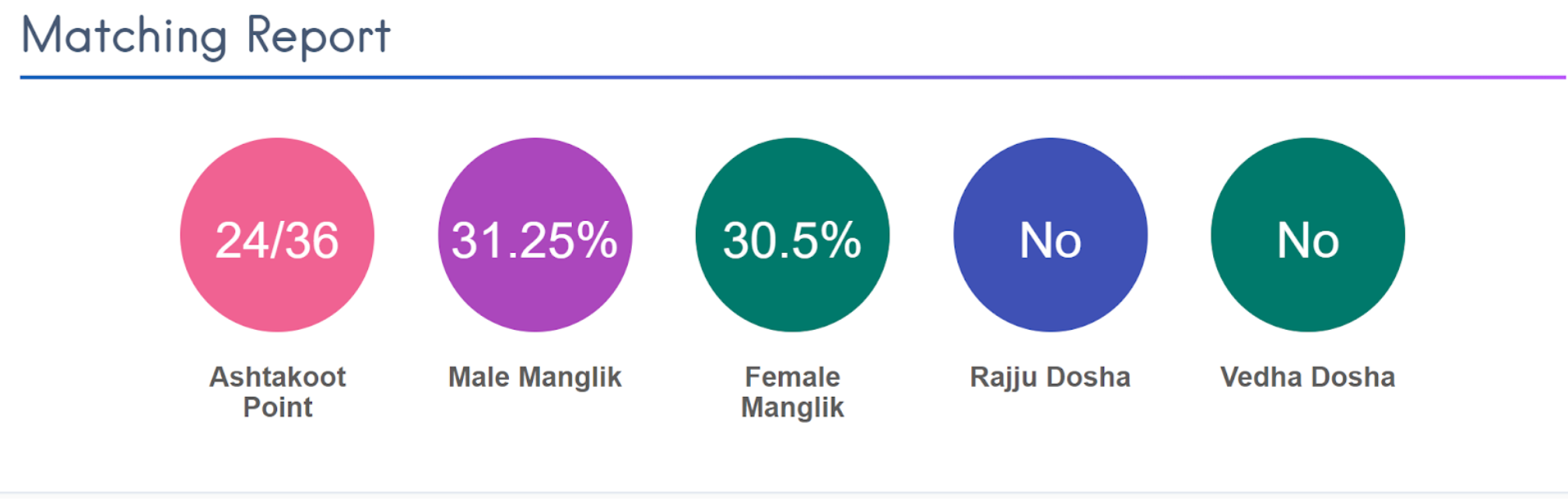 The RVA marriage compatibility online tool is a powerful tool. The major features of it are where you can analyze both the horoscopes of the bride and groom together side-by-side and also you can see both progression charts and current dasha all at once and it also gives traditional ashtakoot (36 point guna ponthana) calculations based on the Vedic astrology. The matching report (% match of Ashtakoota, Manglik), and the % of profile matching. It also provides information about the Rajju doshas and Vedha doshas if any. The tool helps astrologers to find all the required information in a single window for easy comparison, unlike in the traditional softwares where you need to generate multiple charts. You can also generate north/south Indian style kundali, multiple languages are also supported. The tool shows the planetary degrees, following- the Placidus bhava division.